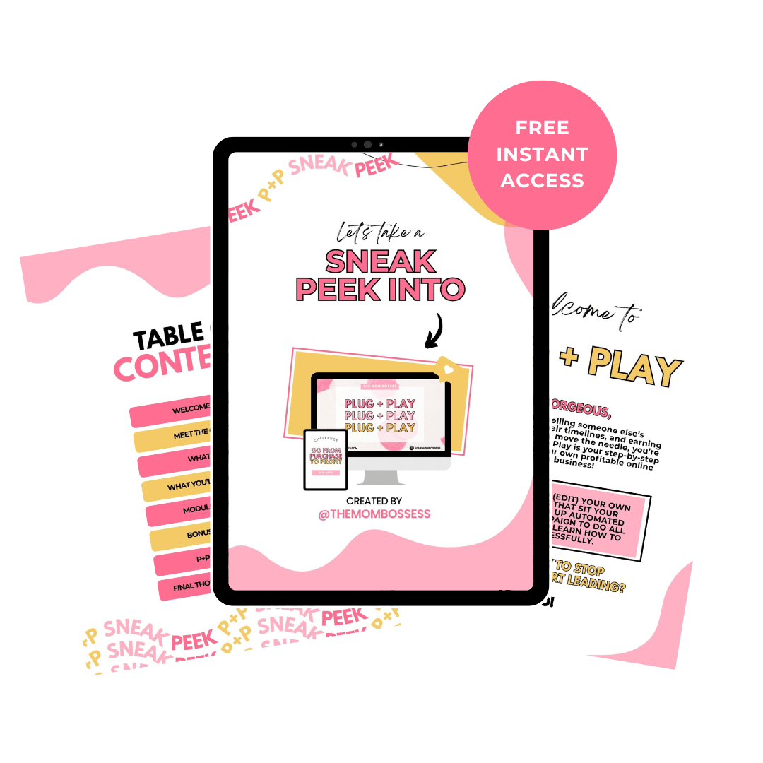 Grab your FREE Sneak Peek into Plug + Play — the beginner-friendly system that shows you exactly how to start and set up your very first automated digital business 💕