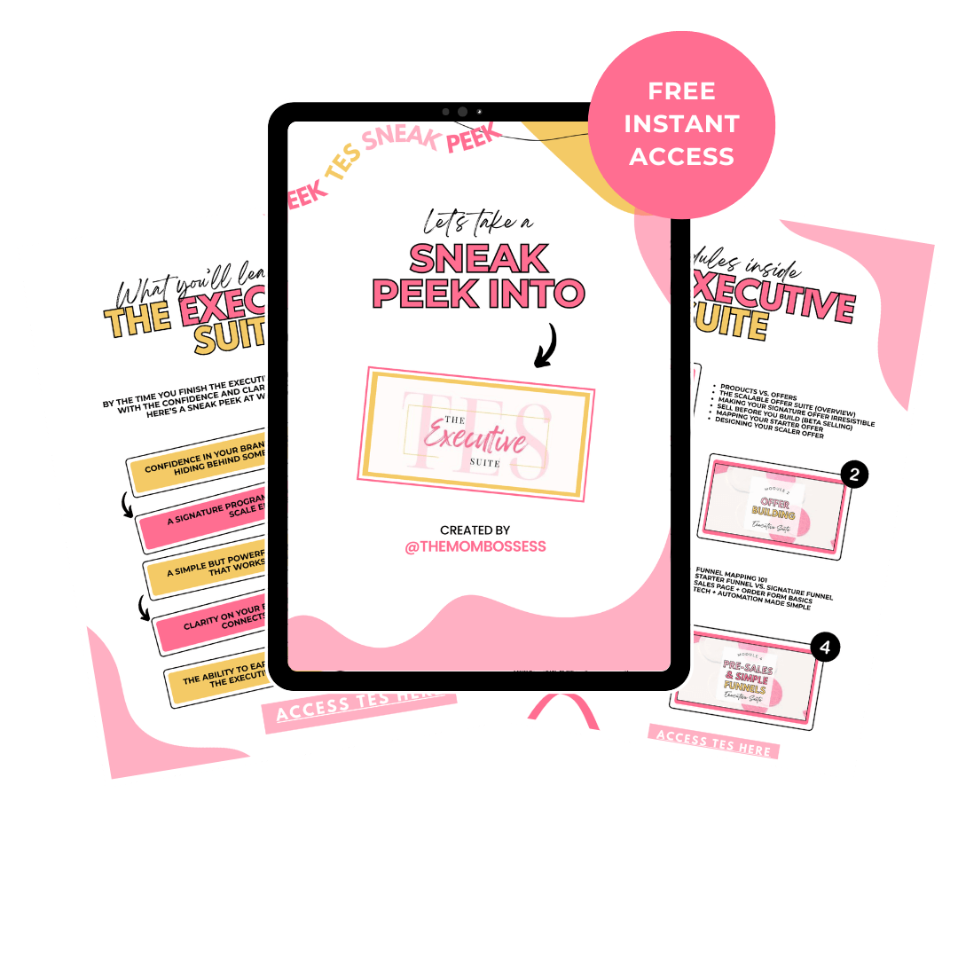 Inside your exclusive sneak peek into The Executive Suite, you’ll get a behind-the-scenes look at the exact system I used to go from reselling other people’s programs to building my own profitable brand.